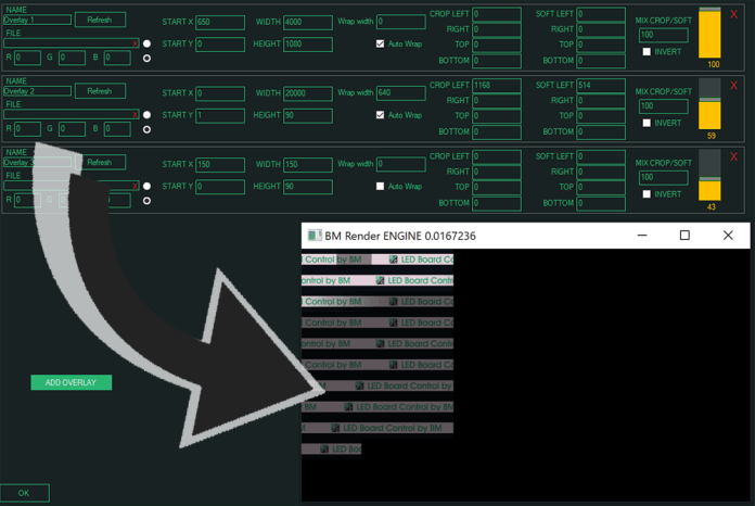 LED Board Control is specifically made to play out your advertising content to your led board systems at live sport events. Due to the process of content production, the LED Board content is produced as a loong video stripe. Normally someone had to remap the content in after effects (or similar software) to fold it into a 16:9 format, so it matches the LED Board mapping. This step can be left out with LED Board Control, because trough its auto wrapping mode it can fold the content live, instead of pre render it (8k / 16k / 32k content wide depends on graphic card).